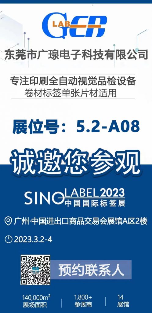 中國國際標簽展即將于2023年3月2日-3月4日在廣州·中國進(jìn)出口商品交易會(huì )展館A區舉辦。東莞市廣瑔電子科技有限公司(廣瑔視覺(jué))標簽檢品機產(chǎn)品將在此次標簽展上進(jìn)行展示。